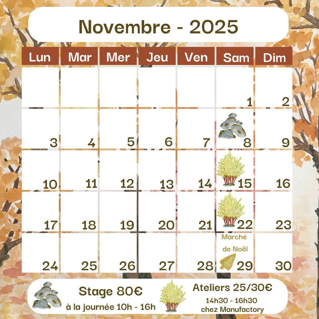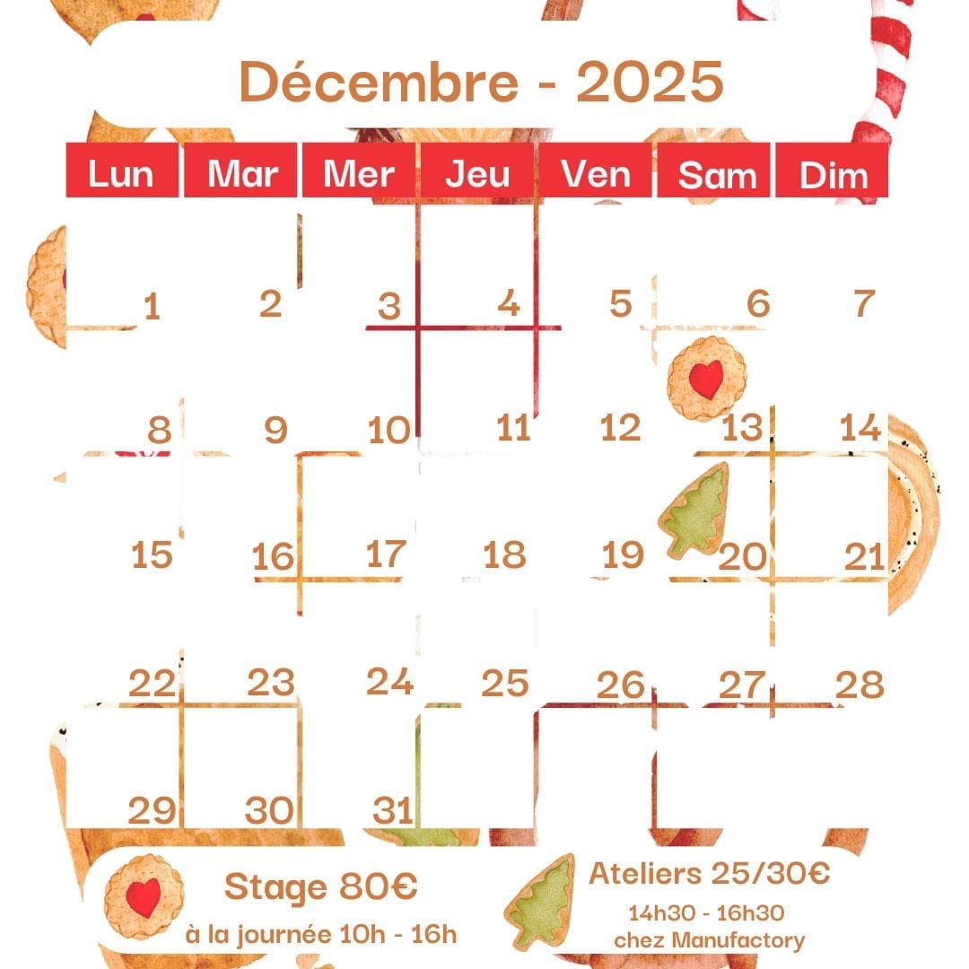 Tu y trouveras les dates des ateliers chez Manufactory les samedi après-midis et les stages à la journée chaque trimestre !